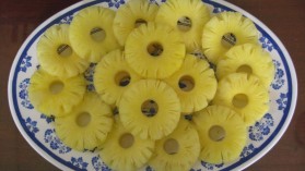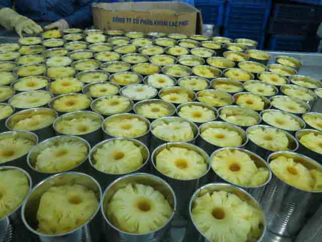 Specifications Sliced pineapple : Brix 14 - 16%, acid 0.2-0.6%.